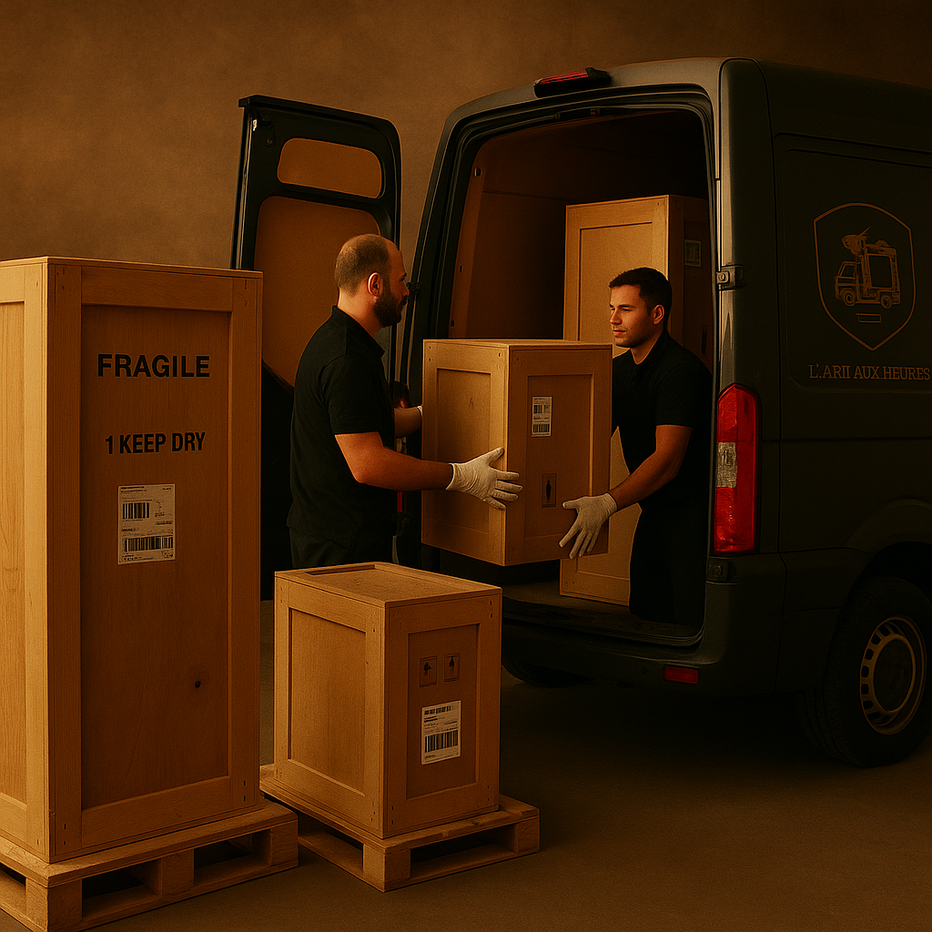 L'art aux heuresTransport & sécurité d’œuvres d’art.18 ans d’expertise dans l’emballage, le transport et l’installation d’œuvres d’art prestigieuses, alliant précision, sens artistique et coordination d’équipe.La sociétéAvec Salah Boukdir, 18 ans d’expérience musée, chaque pièce voyage sans retard, sans imprévu, du conditionnement à la mise en salle. Fondée par Salah BOUKDIRLa société met au cœur de son activité 18 années d’expérience dans le domaine muséal et artistique. Spécialisée dans l’emballage, le transport et l’installation d’œuvres d’art prestigieuses, elle accompagne musées, galeries, collectionneurs privés et entreprises dans la mise en valeur et la préservation de leurs collections. Notre missionGarantir la sécurité, l’intégrité et la présentation optimale de chaque œuvre, de son emballage à son exposition, grâce à une approche qui allie rigueur technique et sensibilité artistique.Installation & Mise en sallePeintures, sculptures, œuvres sous vitrine ou dispositifs multimédias : implantation soignée, contrôles et traçabilité.En savoir plusEn savoir plusEmballage & Conditionnement muséalCaisses sur mesure, matériaux neutres, calage anti-vibration, scellés et traçabilité complète.Analyse de risques, itinéraires confidentiels, chaîne de garde documentée et interventions aux bonnes heures.Sécurité & Sûreté des transportsEn savoir plusItinéraires validés, marges intégrées, plans B/C prêts — convoi discret, traçabilité de bout en bout.Transport dédié & LogistiqueEn savoir plusCliquez iciNous contacterDes questions ? N'hésitez pas à nous contacter via notre formulaire de contact.L'art aux heuresLa sociétéAccueilContact